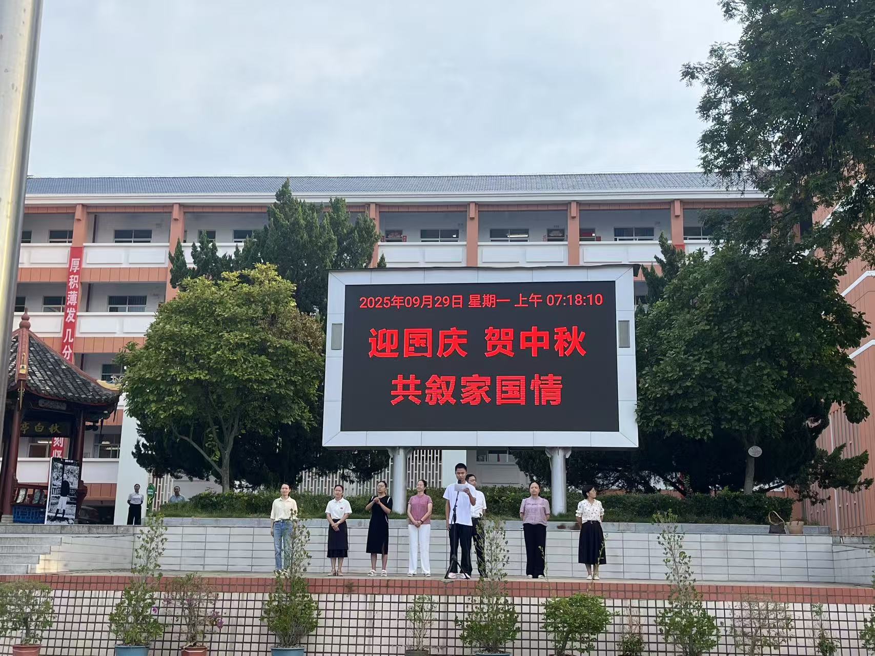 9月29日清晨,长汀一中全体师生齐聚操场,参加“迎国庆 贺中秋 共叙家国情”主题升旗仪式。伴随着雄壮的《义勇军进行曲》,五星红旗冉冉升起,师生们肃立行注目礼,心中涌动着对祖国的无限崇敬。